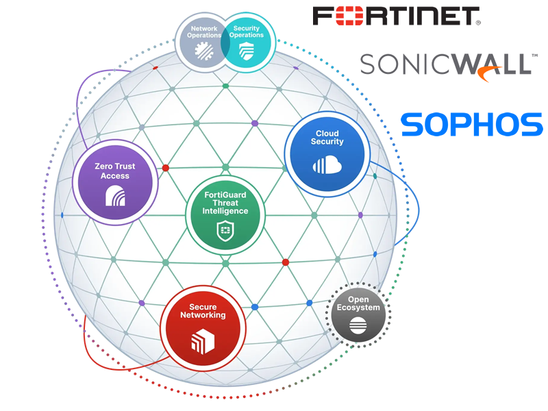 • Integración con SD-WAN segura, ideal para sucursales y redes distribuidas. FortiGate: Plataforma de seguridad de red unificada con firewall, prevención de intrusiones, antivirus y más.